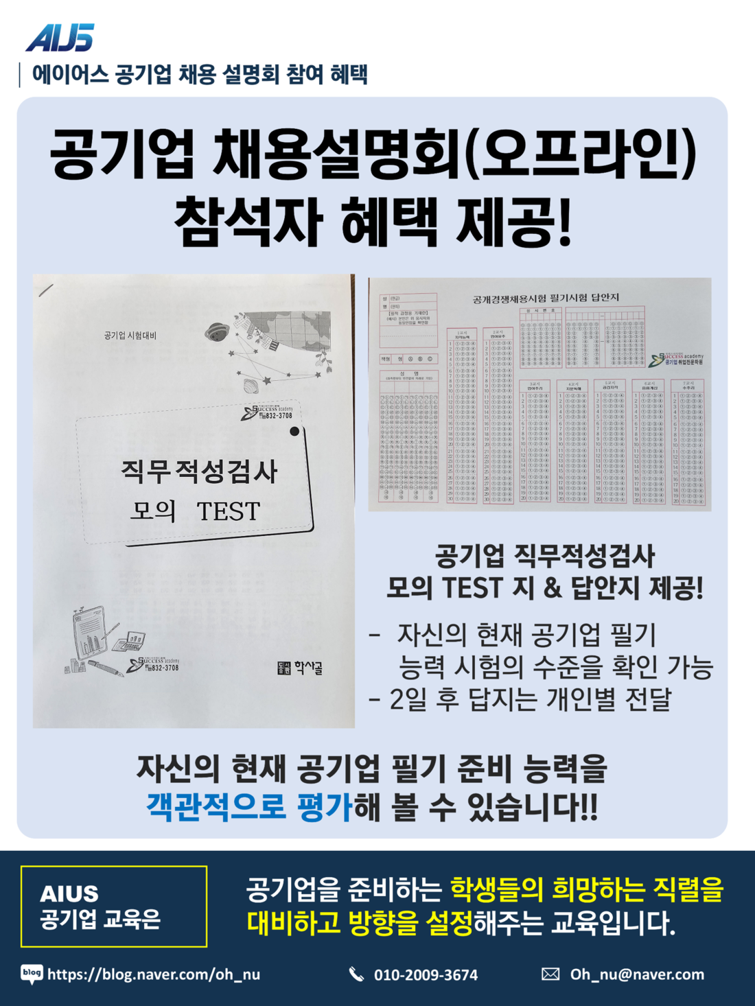 참여 혜택 : 공기업 직무적성검사 모의 TEST지 & 답안지 제공! (자신의 직무적성평가 능력을 객관적으로 알 수 있음)