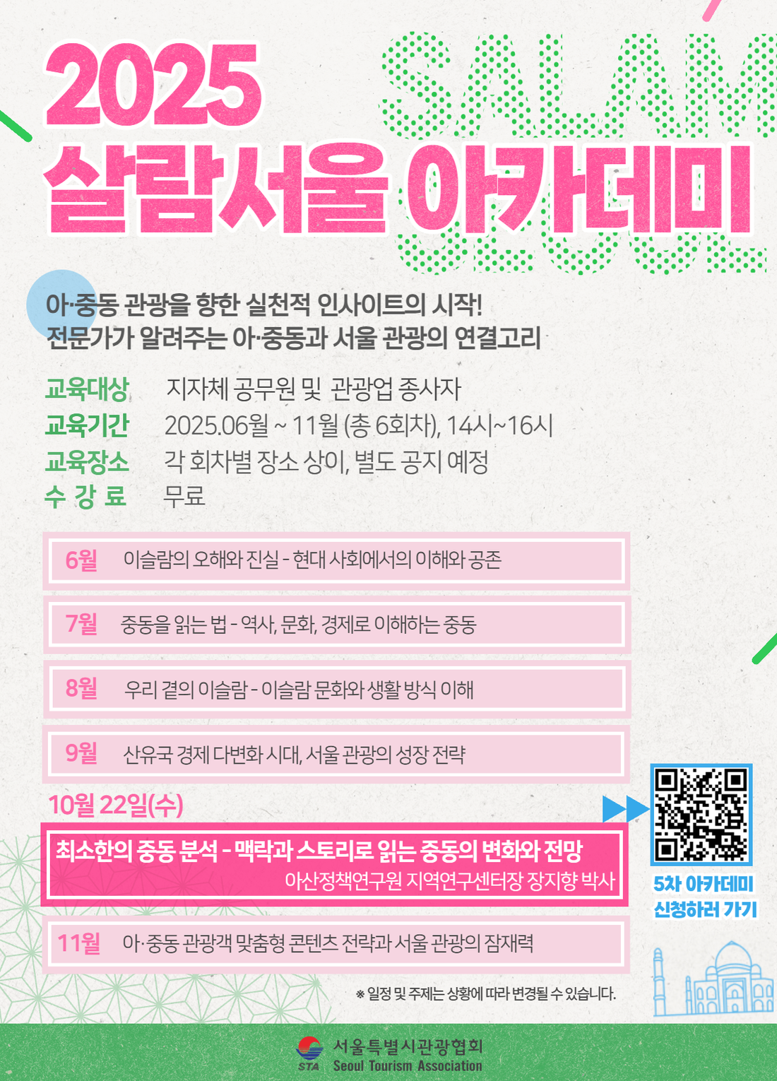 서울특별시관광협회에서 서울 관광 발전을 위한 아·중동 전문가 초청 '2025 제5차 살람서울 아카데미'를 개최합니다.