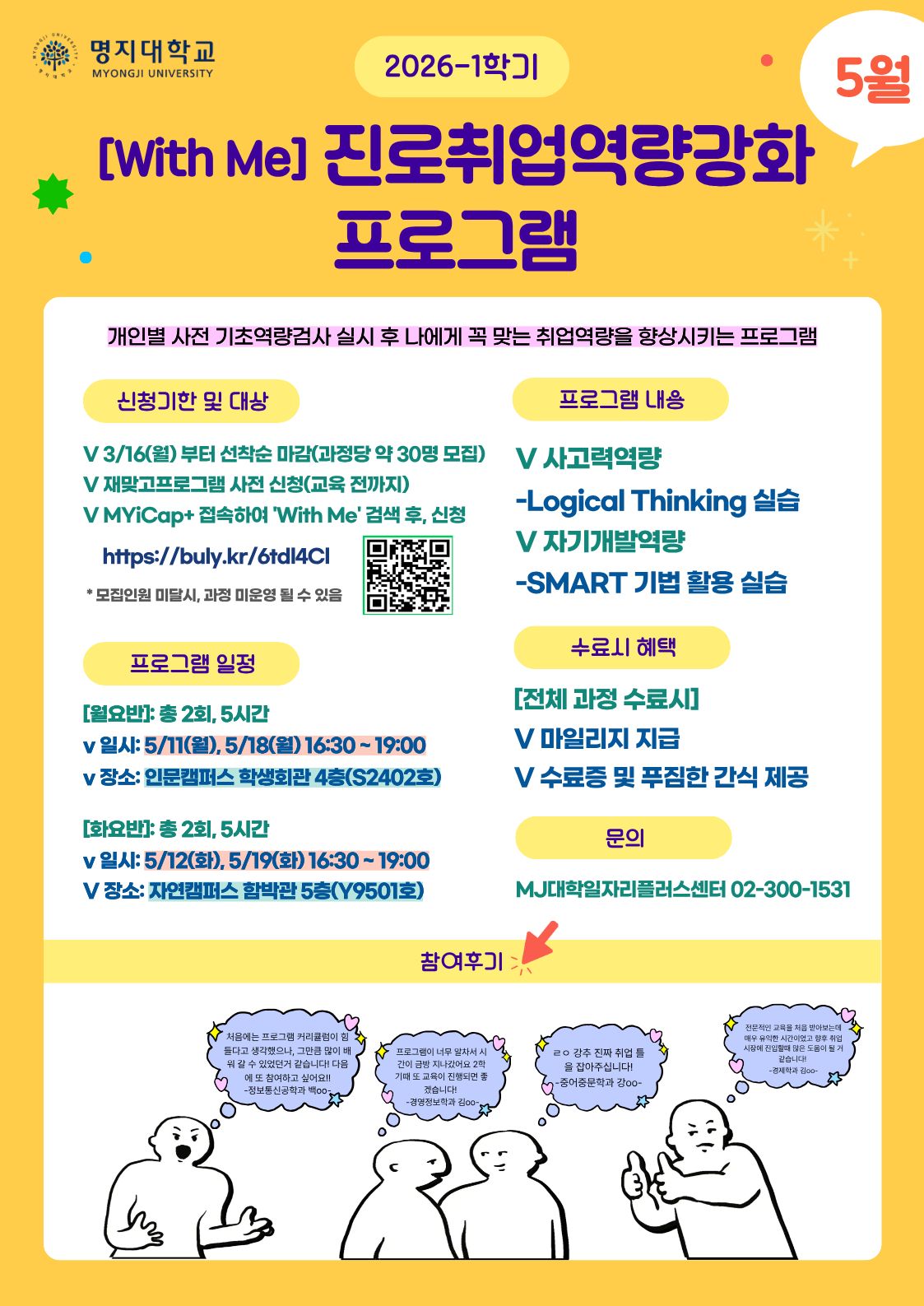 1. 월요반(인문캠퍼스): https://myicap.mju.ac.kr/site/lecture00114414