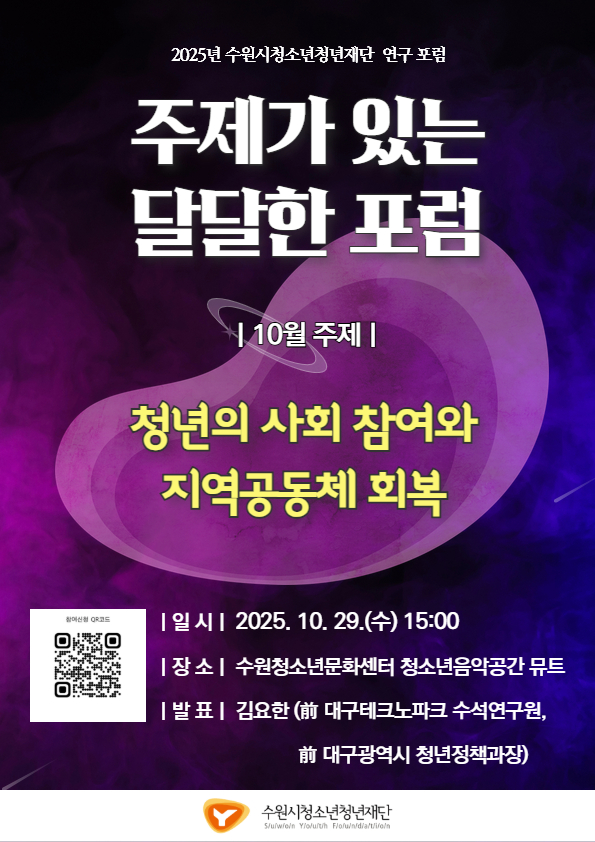 수원시청소년청년재단 10월〈주제가 있는 달달한 포럼〉참석 안내